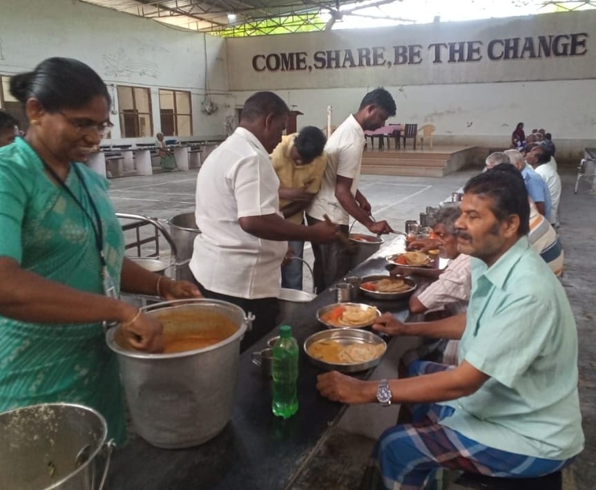 Free food is provided to the inpatients and their attendants at St. Lukes leprosarium Peikulam.